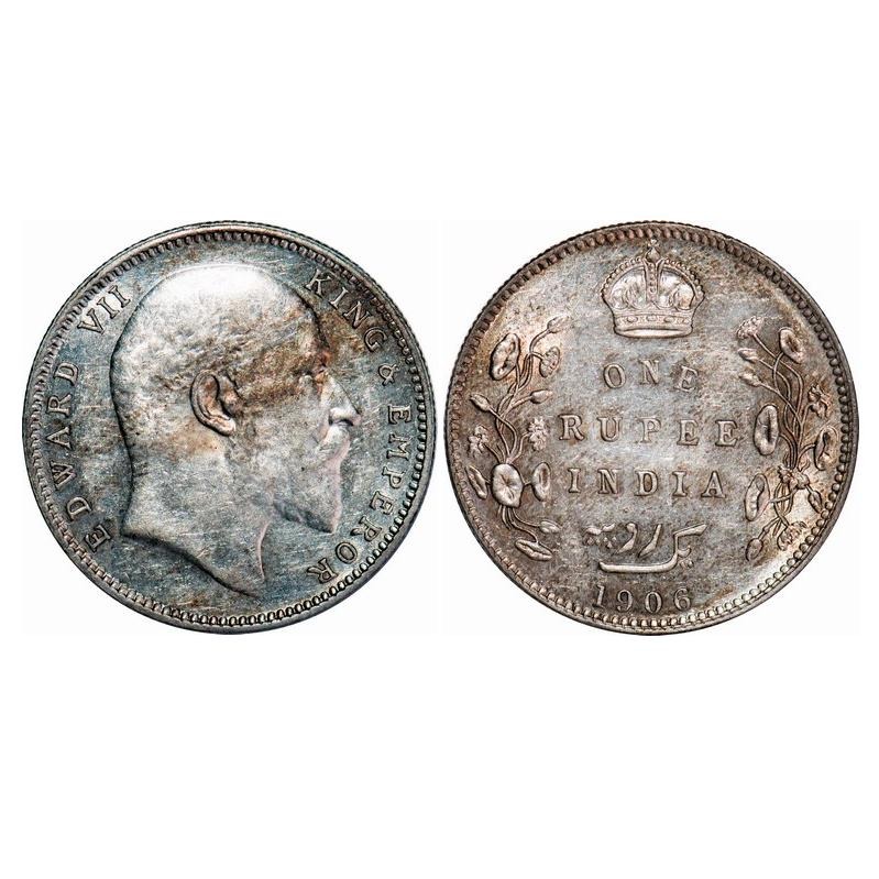 Edward VII, Silver, Rupee, 1906, Bombay Mint, 'B' incused and dot. F. Prid. 202. GK 940. Uncirculated. Very Scarce.