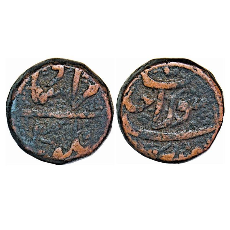 Murad Bakhsh, Copper Dam, 20.61g, Surat Mint, Ahd (1) RY, Falus Murad Shahi legend on obv. KM 269.1. About Very Fine, Scarce.