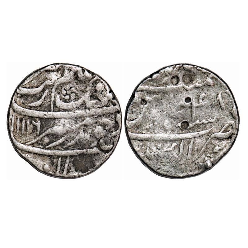 Aurangzeb, Silver Rupee, 11.29g, Alamgirpur (Bhilsa) Mint, AH 10xx/2x RY, complete mint name on rev...