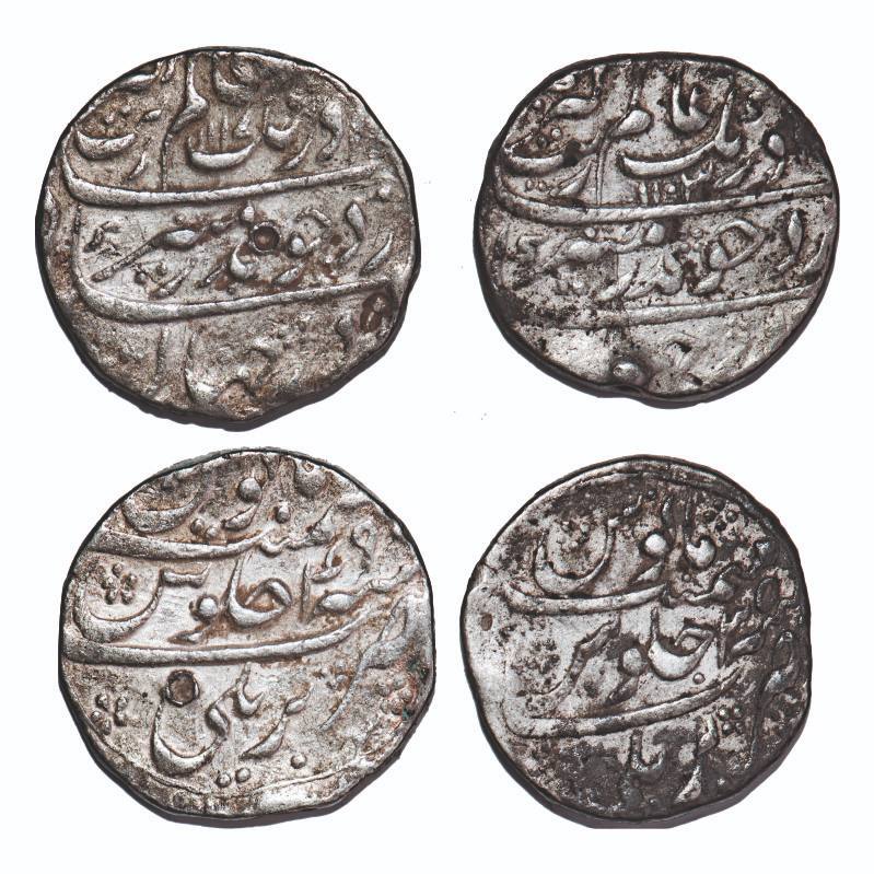 Aurangzeb, Silver Rupee(2 Coins), Bareli Mint, AH 1103/35, 1117/49 RY, complete mint name on rev bottom. KM 300.19. Very Fine, Scarce.