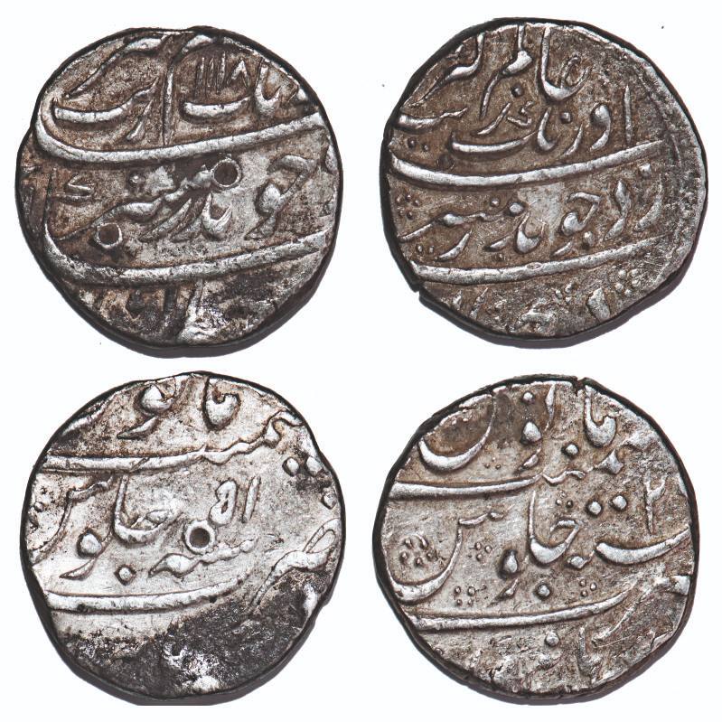 Aurangzeb, Silver Rupee (2 Coins), Burhanpur Mint, 2x RY & AH 1118/51 RY. KM 300.24. Very Fine, Scarce.