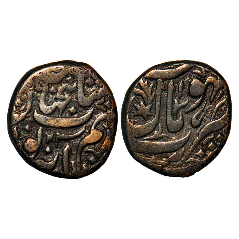 Bhopal, Copper ½ Anna, 15.04g, Shah Jahan Begam (AH 1285-1319 / 1868-1890 AD), Bhopal Mint. KM Y17.1 type Unlisted. Very Fine, Rare.