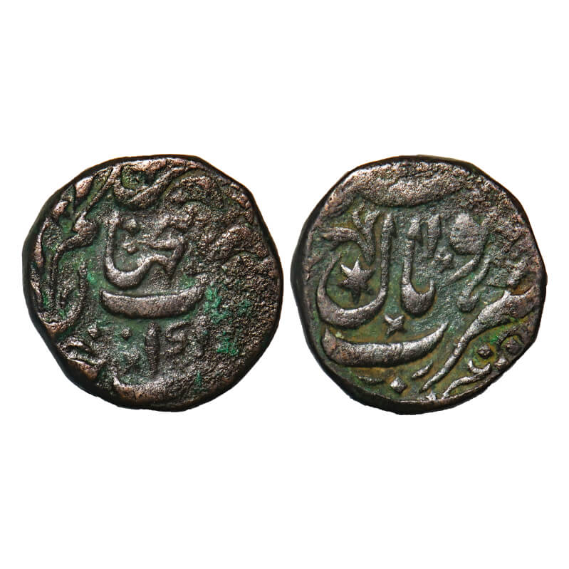 Bhopal, Copper Anna, 30.29g, Shah Jahan Begam (AH 1285-1319 / 1868-1890 AD), Bhopal Mint. KM Y18, type Unlisted, broad flan. About Very Fine, Scarce.