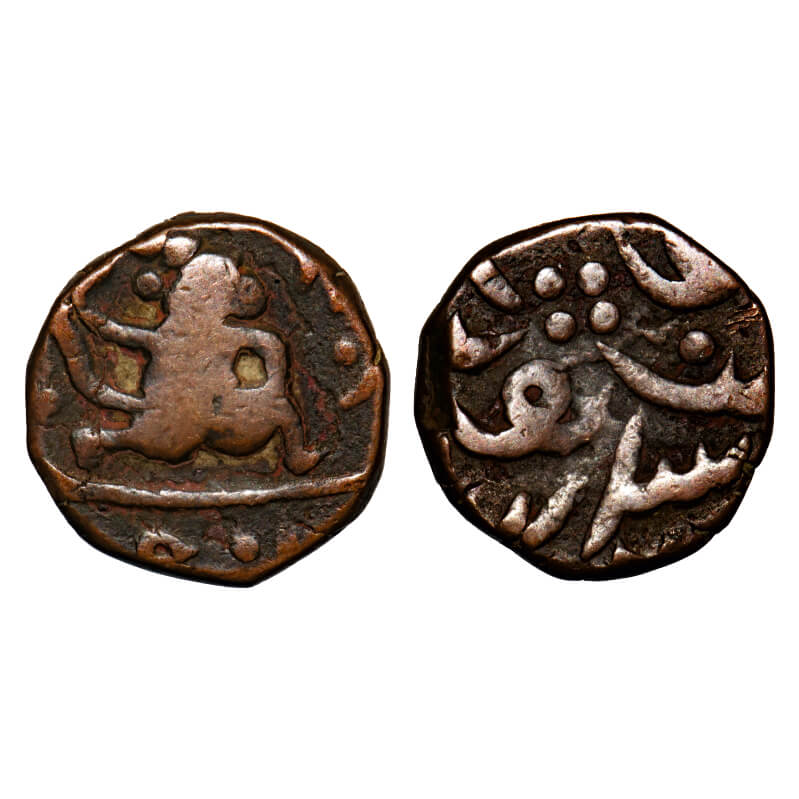 Dhar, Copper Paisa, 13.09g, Obv: Hanuman running right. KM Unlisted. Very Fine, Scarce.