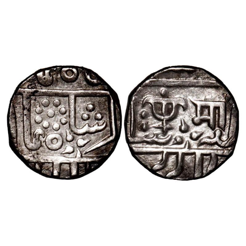 Gwalior, Silver Rupee, 10.99g, Madho Rao (1886-1925 AD), Lashkar Mint, nagari 'Ma' and Bow and arrow, on rev. Jan Lingen Page 68/25 type/KM 159. Extremely Fine, Scarce.