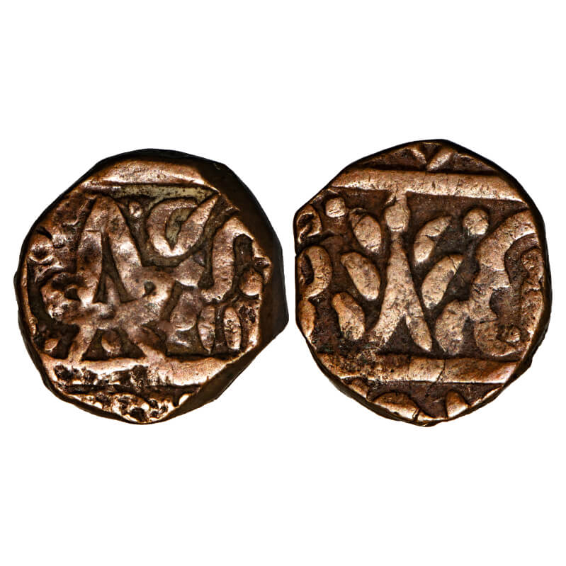 Jhabua, Copper Paisa, 12.23g, unsual designs on obverse & reverse. KM Unlisted type. About Very Fine, Scarce.