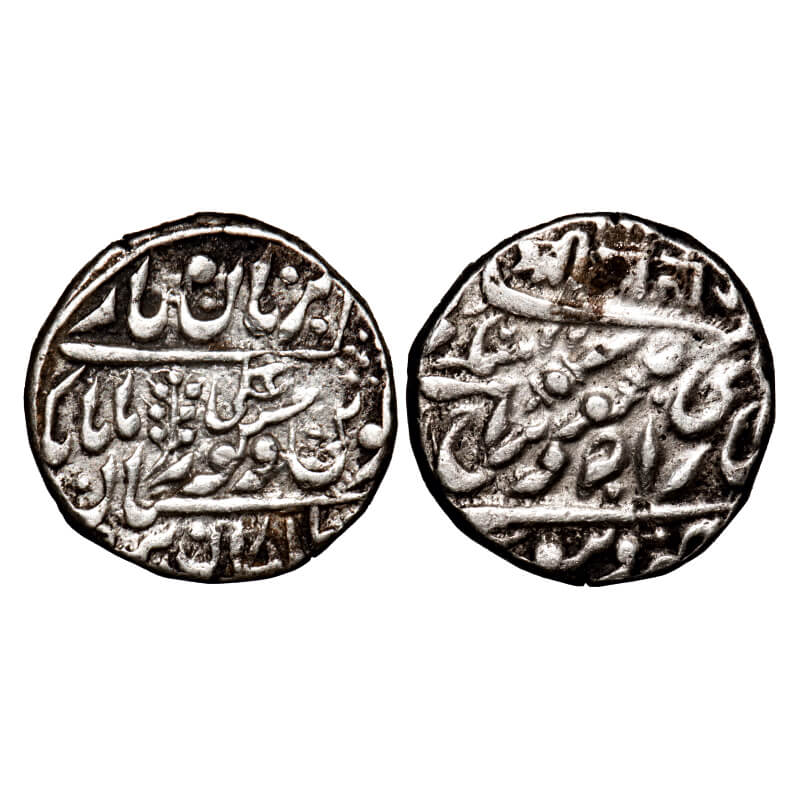 | Jodhpur, Silver Rupee, 11.32g, Jaswant Singh (1873-1895 AD), Jodhpur Mint, INO Queen Victoria, (VS 1943), 'Ali' in persian in nagari as daroga mark & jhar, sword and shri mataji on reverse. J.Lingen J.09.06.03. type. Very Fine, Rare. |
