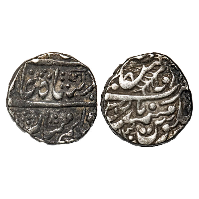 Jodhpur, Silver Rupee, 11.37g, INO Shah Alam II, Dar ul Mansur Jodhpur Mint, (AH 1264/23 RY) Daroga mark 'La'. J.Lingen S03.02/05 type, About Very Fine, Scarce.