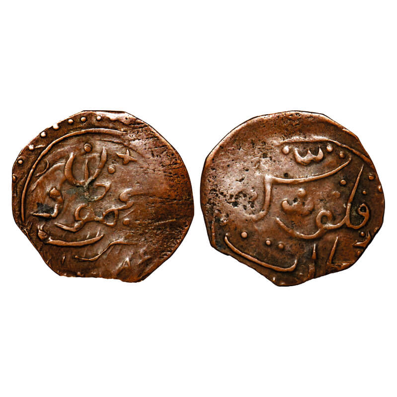 Kalat, Copper Falus, 3.069g, Khudadad Khan (AH 1274-1311, 1856-1893 AD), Kalat Mint, INO Mahmud Khan Durrani. KM 21. Very Fine, Scarce.
