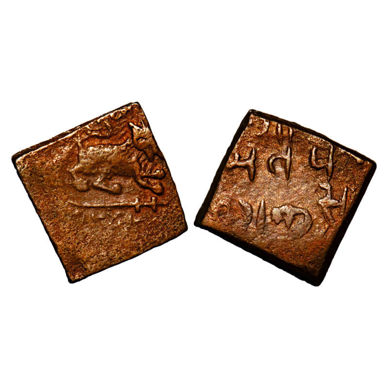 Lunawada, Copper Paisa, 7.87g, Wakhat Singhji, (1942 VS), Lion to right with lunanawada in nagari above & sword below, Sameer Panchal PM 222.1 type. Very Fine, Scarce.
