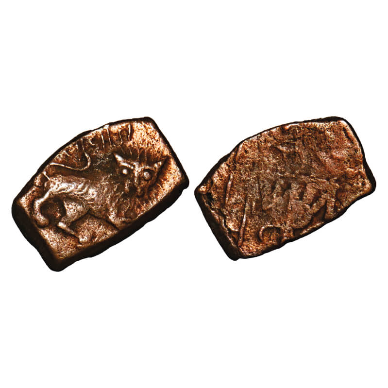 Lunawada, Copper ½ Paisa, 3.50g, Wakhat Singhji, (1942 VS), Lion to right with lunanawada in nagari above & sword below, Sameer Panchal PM 223.1 type. Very Fine, Scarce.