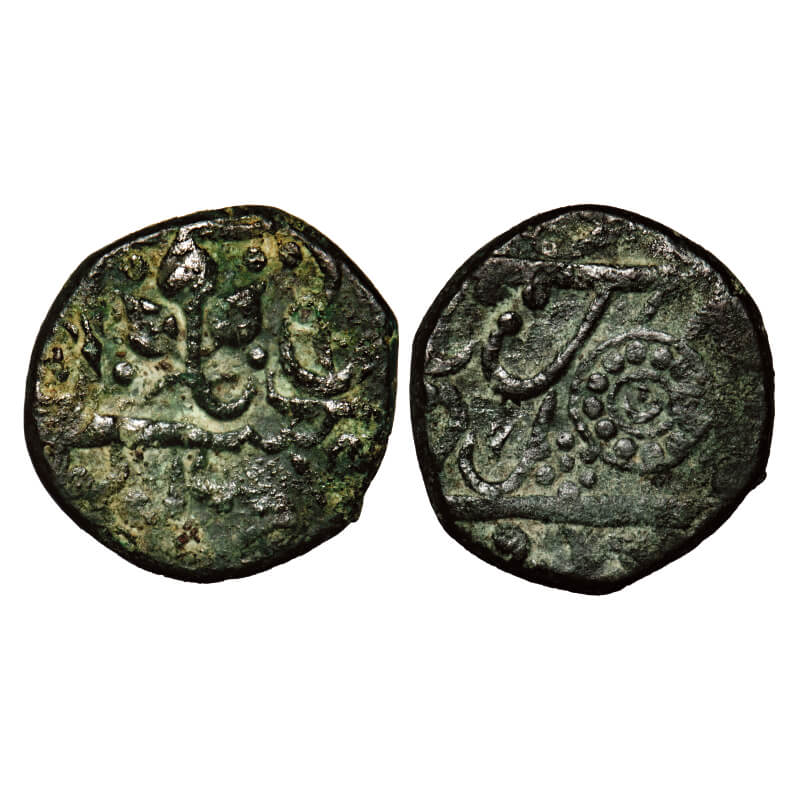 Ratlam, Copper Paisa, 12.19g, Anonymous hammered coinage, Raij Series, INO Shah Alam II, thre petal bud on obverse and Raij within dotted double line circle on reverse. KM Unlisted. Very Fine, Rare.