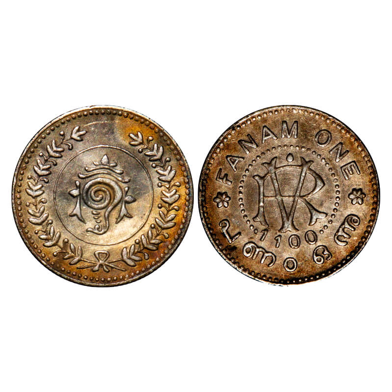 Travancore, Silver Fanam, 1.52g, Rama Varma VI (ME 1062-1101 / 1885-1924 AD), ME 1100 (1924-1925 AD). KM 51. Toned Extremely Fine, Scarce.