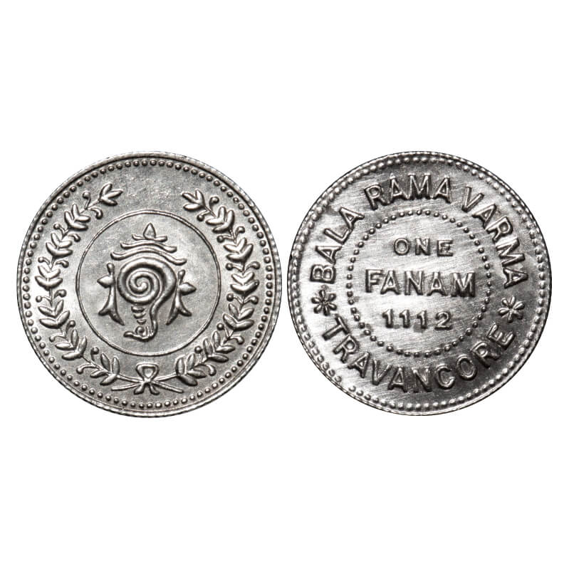 Travancore, Silver, 1 Fanam, 1.48g, Bala Rama Varma II (ME 1101-1126, 1924-1949 AD), ME 1112 (1936-...