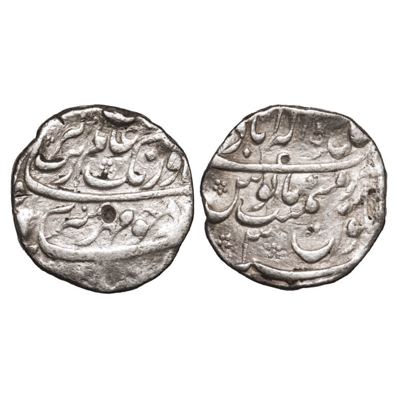 Aurangzeb, Silver Rupee, 11.34g, Mint Ephitet Baldah Allahabad, 3 RY, this is interesting coin having the ' Mehr o Munir ' couplet generaly used on gold dies. KM 300.3 type. About Very Fine, Very Scarce.