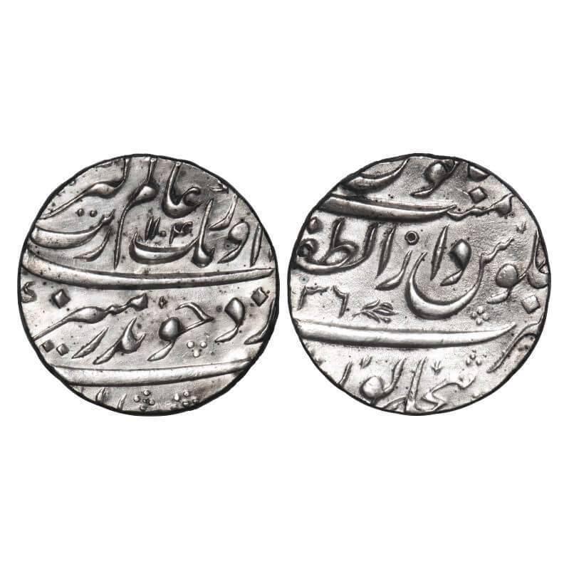 Aurangzeb, Silver Rupee, 11.40g, Dar ul Zafar Bijapur Mint, AH 1104/32 RY, with flower symbol on reverse. KM 300.23. About Extremely Fine, Scarce.