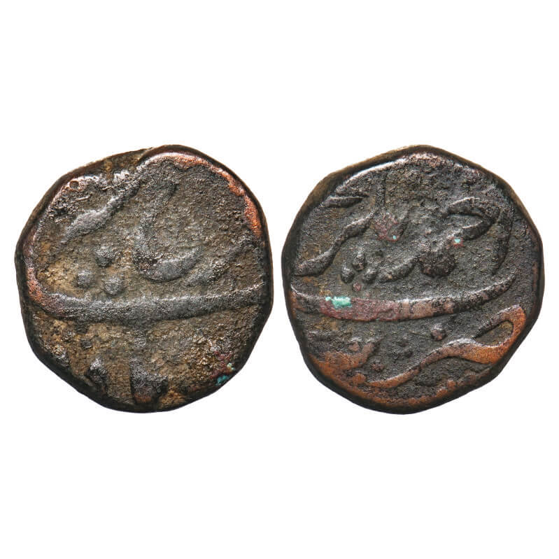 Farrukhsiyar, Copper Paisa, 13.60g, Ahmadnagar Mint, almost complete mint name on rev top. KM 372.3. Fine+, Scarce.
