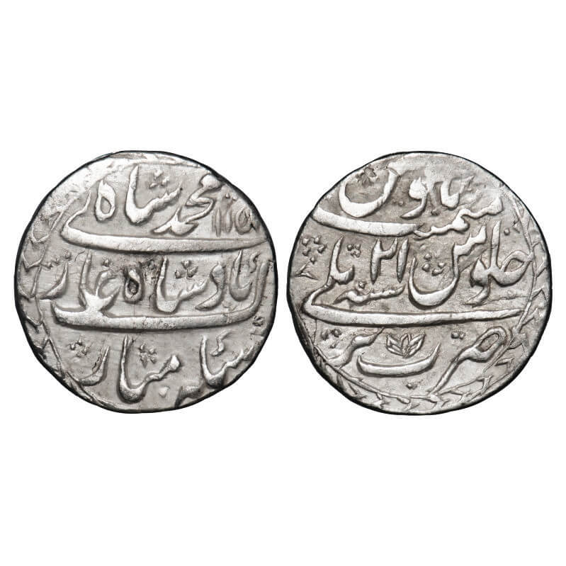 Muhammad Shah, Silver Rupee, 11.26g, Bareli Mint, AH 1151/21 RY. KM 436.18. Very Fine, Scarce.