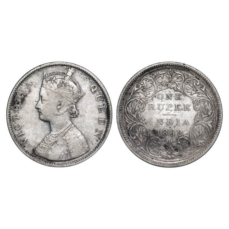 Victoria Queen, Silver, Rupee, 1862, Bombay Mint, B/II/1/0. F. Prid 69. GK 286. Very Fine. Scarce....