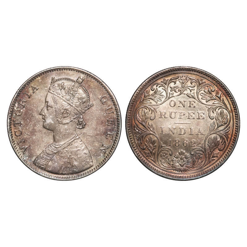 Victoria Queen, Silver, Rupee, 1862, Bombay Mint, B/II/2/0. F. Prid 71. GK 287. Uncirculated, Toned. Very Scarce.