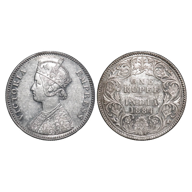 Victoria Empress, Silver, Rupee, 1884, Bombay Mint, A3/I, 'B' raised. F. Prid 167. GK 489. Almost Uncirculated with original mint luster. Very Scarce.