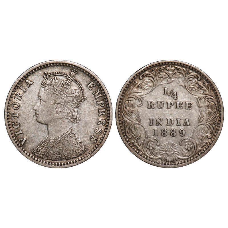 Victoria Empress, Silver, 1/4 Rupee, 1889, Bombay Mint, C(i)/II, 'B' incused. F. Prid 423. GK 715. Extremely Fine. Very Scarce.