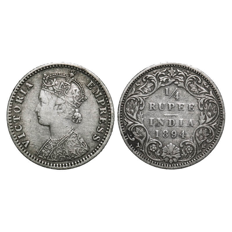 Victoria Empress, Silver, 1/4 Rupee, 1894, Bombay Mint, C(i)/I, 'B' incused. F. Prid 428. GK 726. E...