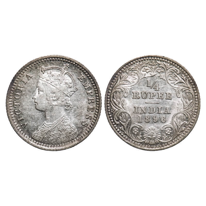 Victoria Empress, Silver, 1/4 Rupee, 1896, Calcutta Mint, C/II, 'C' incused. F. Prid 400. GK 728. Extremely Fine+. Very Scarce.