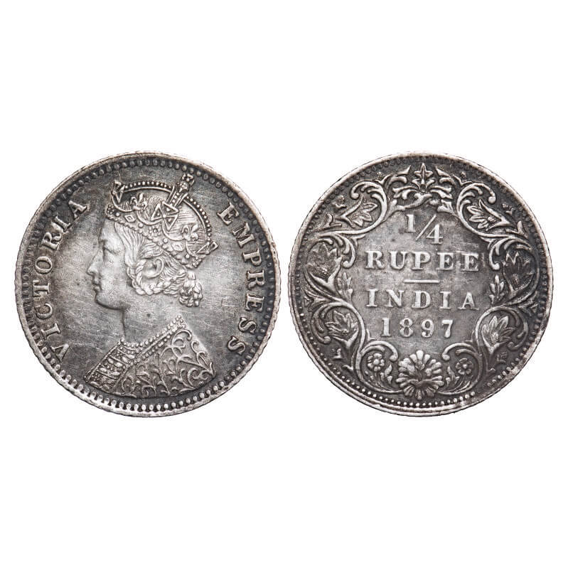 Victoria Empress, Silver, 1/4 Rupee, 1897, Bombay Mint, C(i)/I, 'B' incused. F. Prid 430. GK 731. Very Fine+. Very Scarce.