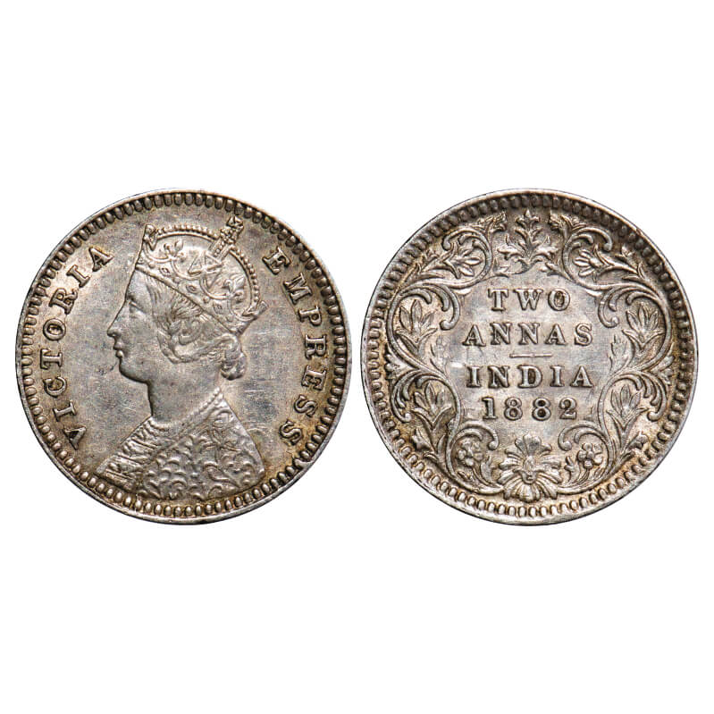 Victoria Empress, Silver, 2 Annas, 1882, Calcutta Mint, B/II, 'C' incused. F. Prid 497. GK 763. Extremely Fine+. Very Scarce.