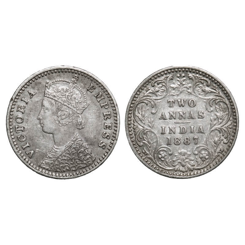 Victoria Empress, Silver, 2 Annas, 1887, Bombay Mint, B/II, 'B' incused. F. Prid 540. GK 783. Extremely Fine+. Very Scarce.