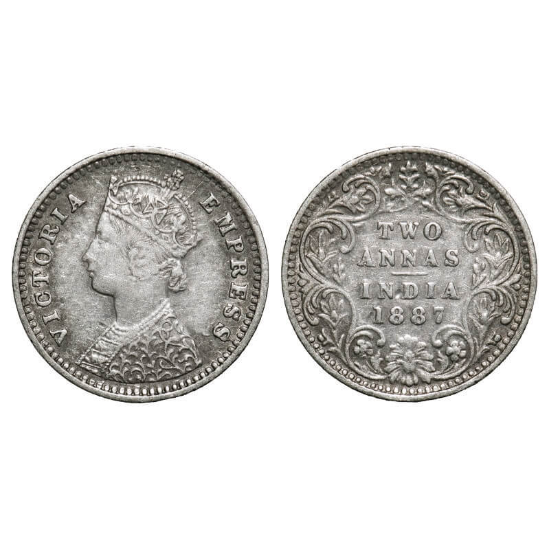 Victoria Empress, Silver, 2 Annas, 1887, Bombay Mint, B/II, 'B' incused. F. Prid 540. GK 783. Extremely Fine. Scarce.
