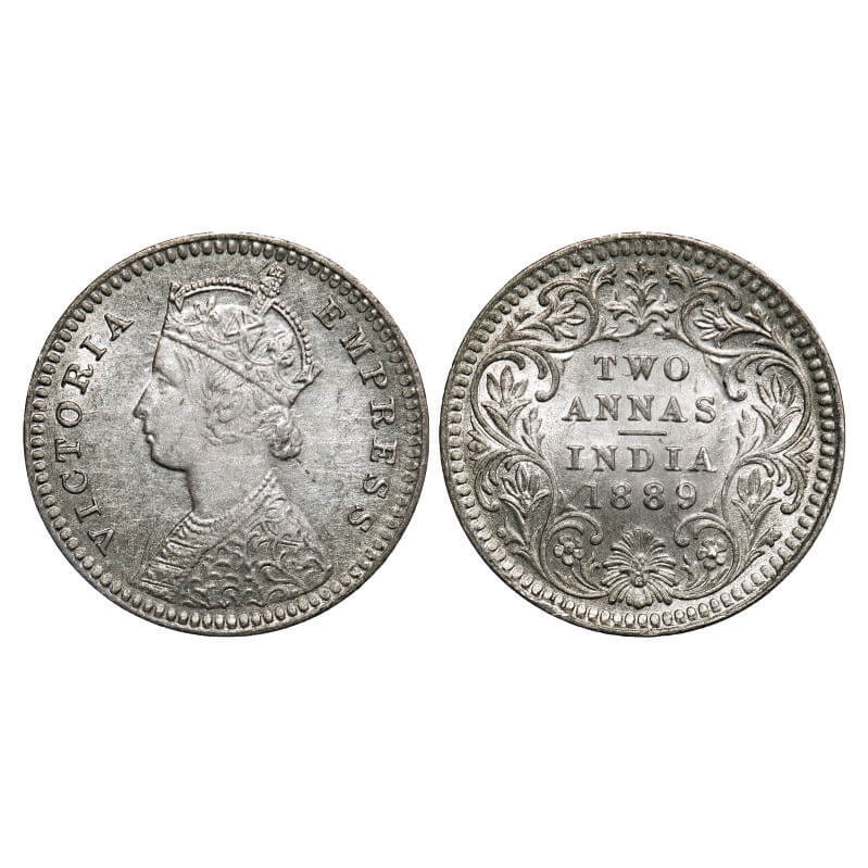 Victoria Empress, Silver, 2 Annas, 1889, Calcutta Mint, B/II, 'C' incused. F. Prid 504. GK 788. Extremely Fine+. Very Scarce.