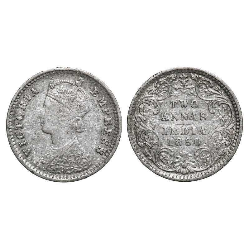 Victoria Empress, Silver, 2 Annas, 1890, Bombay Mint, B/II, 'B' incused. F. Prid 545. GK 792. Extremely Fine. Very Scarce.