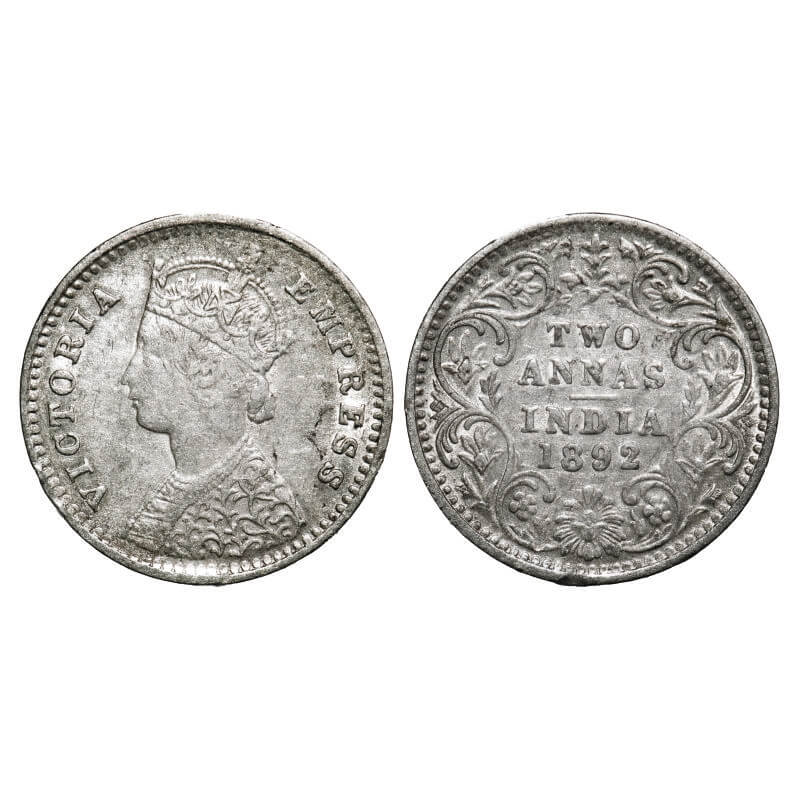 Victoria Empress, Silver, 2 Annas, 1892, Bombay Mint, B/II, 'B' incused. F. Prid 547. GK 796. About...