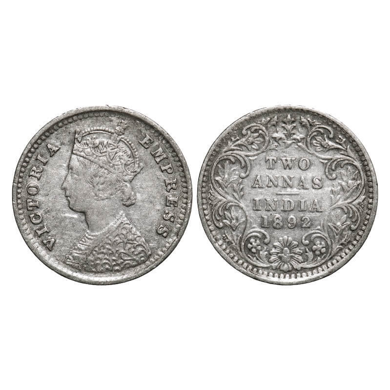 Victoria Empress, Silver, 2 Annas, 1892, Bombay Mint, B/II, 'B' incused. F. Prid 547. GK 796. About...