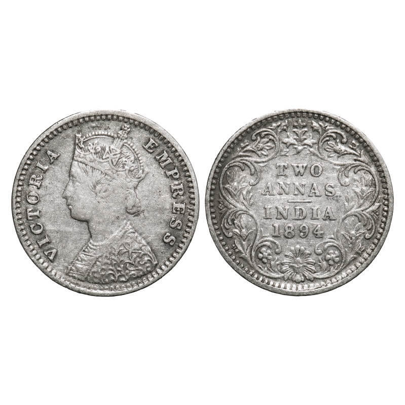 Victoria Empress, Silver, 2 Annas, 1894, Bombay Mint, B/II, 'B' incused. F. Prid 549. GK 801. Very Fine+. Very Scarce.