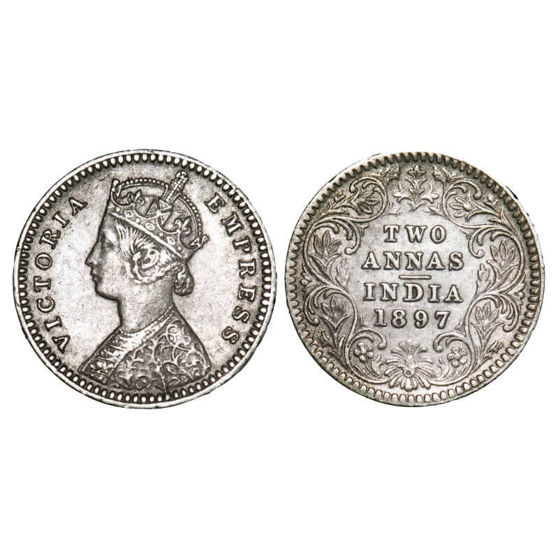 Victoria Empress, Silver, 2 Annas, 1897, Calcutta Mint, B/II, 'C' incused. F. Prid 512. GK 807. Extremely Fine. Scarce.