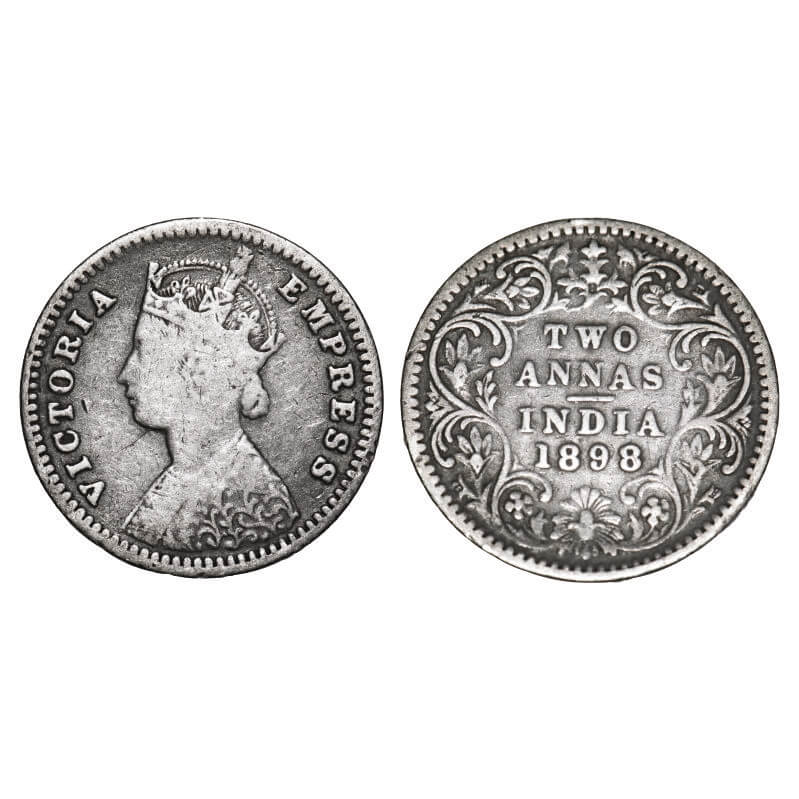 Victoria Empress, Silver, 2 Annas, 1898, Bombay Mint, B/II, 'B' incused. F. Prid 552. GK 809. Very Fine. Scarce.