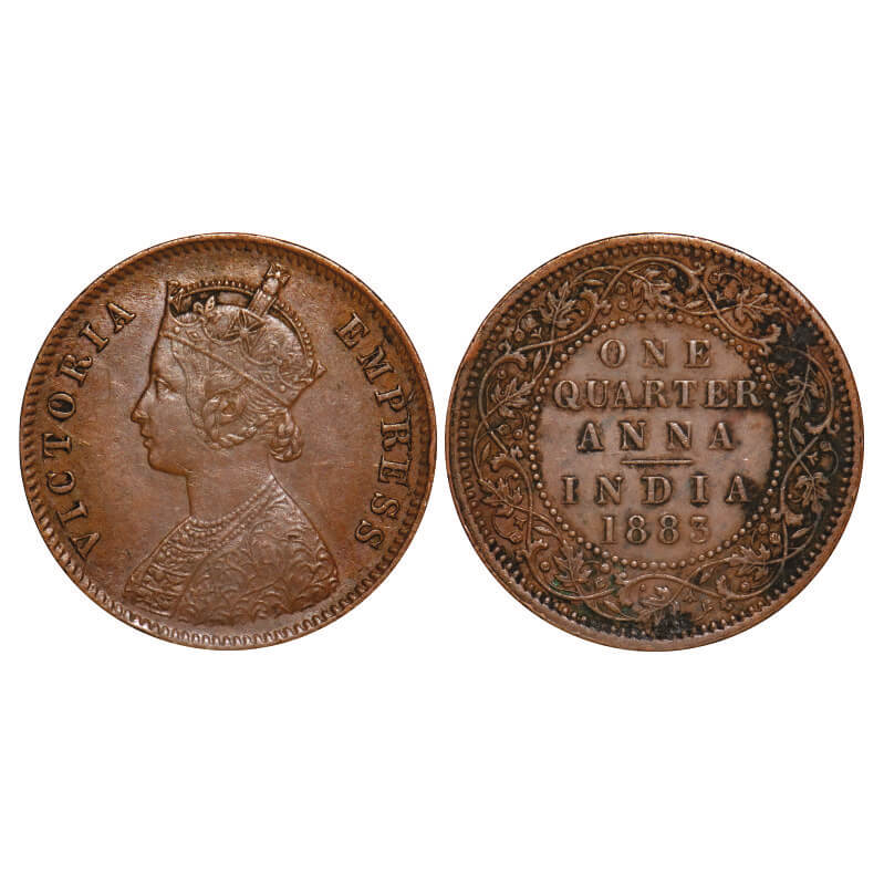 Victoria Empress, Copper, Quarter Anna, 1883, Calcutta Mint, B/II, 'C' incused. F. Prid 616. GK 837. Extremely Fine, Details. Scarce.