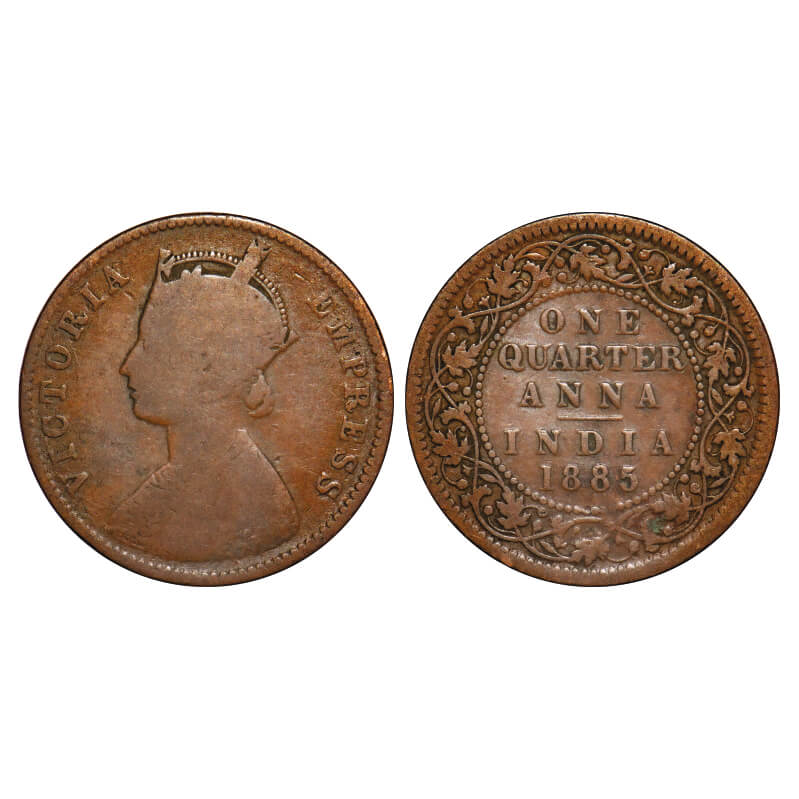Victoria Empress, Copper, Quarter Anna, 1885, Calcutta Mint, B/II, 'C' incused. F. Prid 618. GK 840. Fine+. Scarce.