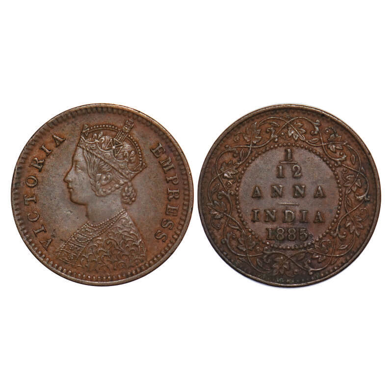 Victoria Empress, Copper, 1/12 Anna, 1885, Calcutta Mint, Obv B, No mint mark. F. Prid 790. GK 900. Extremely Fine+. Very Scarce.