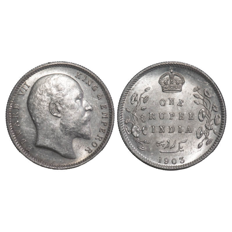 Edward VII, Silver, Rupee, 1903, Calcutta Mint, No mint mark. F. Prid 189. GK 924. Brilliant Uncirc...