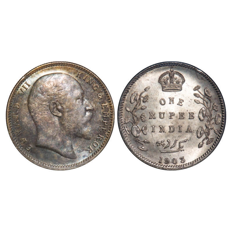 Edward VII, Silver, Rupee, 1903, Calcutta Mint, No mint mark. F. Prid 189. GK 924. Brilliant Uncirculated, Rainbow Toned Obv. Very Scarce.