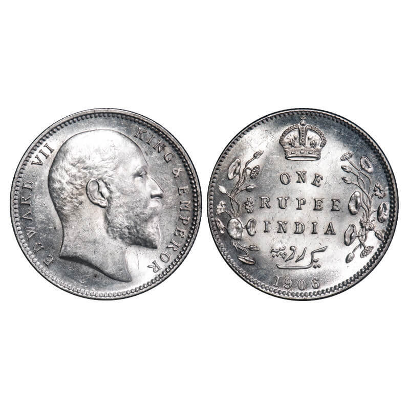 Edward VII, Silver, Rupee, 1906, Calcutta Mint, No mint mark. F. Prid 192. GK 938. Uncirculated. Very Scarce.