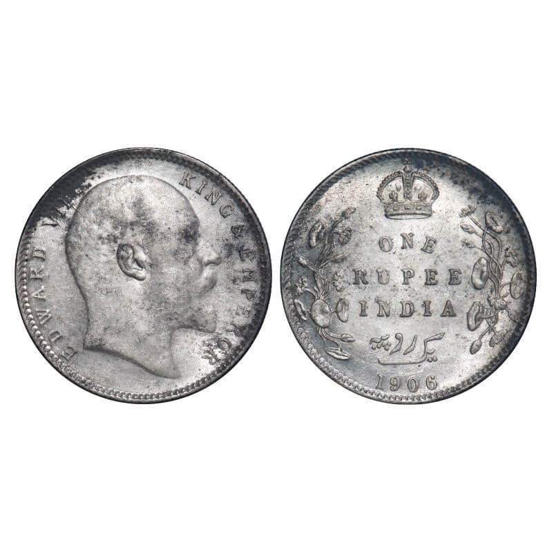 Edward VII, Silver, Rupee, 1906, Bombay Mint, 'B' incused and dot. F. Prid 202. GK 940. Brilliant U...
