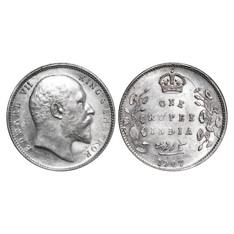 Edward VII, Silver, Rupee, 1907, Calcutta Mint, No mint mark. F. Prid 193. GK 942. Extremely Fine+. Scarce.