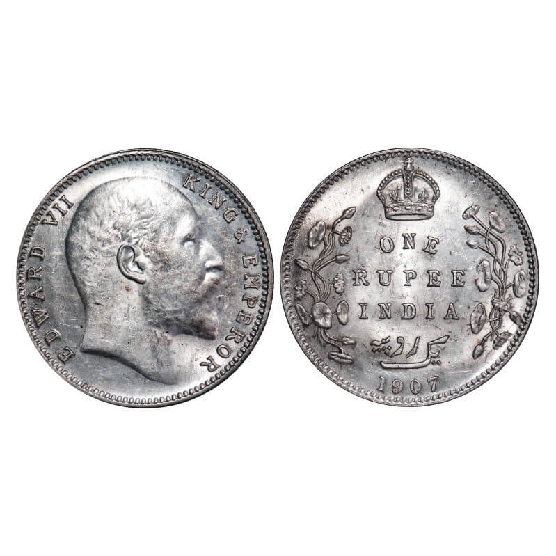 Edward VII, Silver, Rupee, 1907, Bombay Mint, 'B' incused and dot, Narrow numeral 7. F. Prid 203. GK 944. Almost Uncirculated. Very Scarce.
