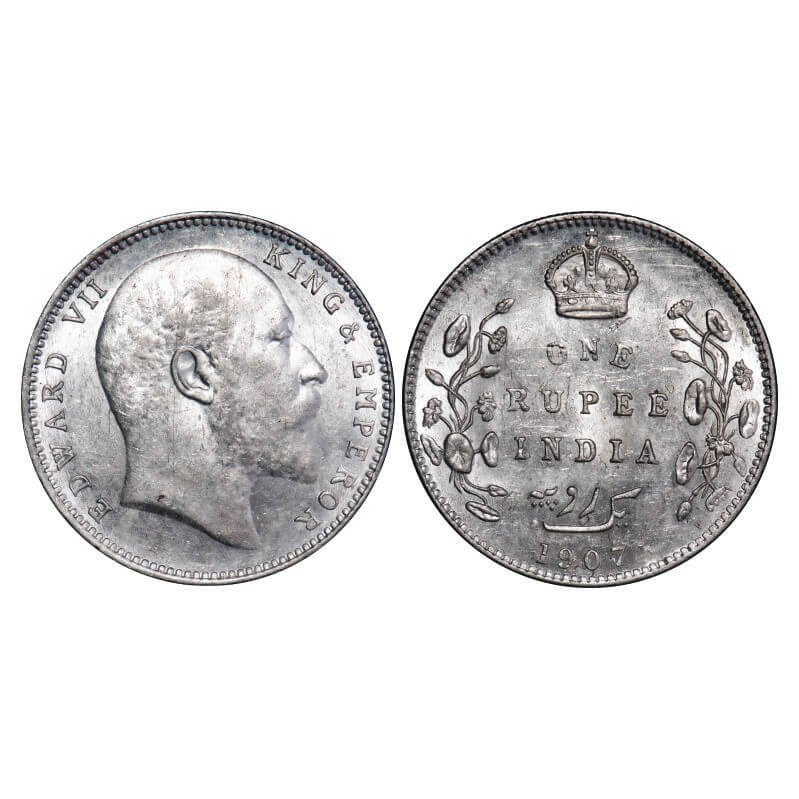 Edward VII, Silver, Rupee, 1907, Bombay Mint, 'B' incused and dot, Narrow numeral 7. F. Prid 203. GK 944. Uncirculated. Very Scarce.