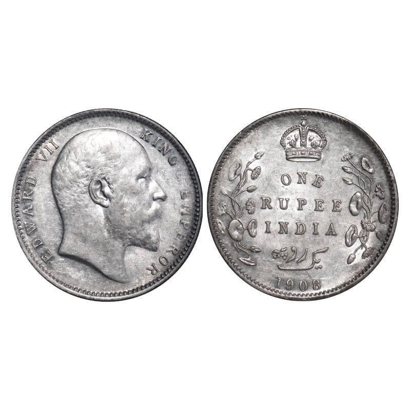Edward VII, Silver, Rupee, 1908, Calcutta Mint, No mint mark. F. Prid 194. GK 946. About Uncirculated. Scarce.